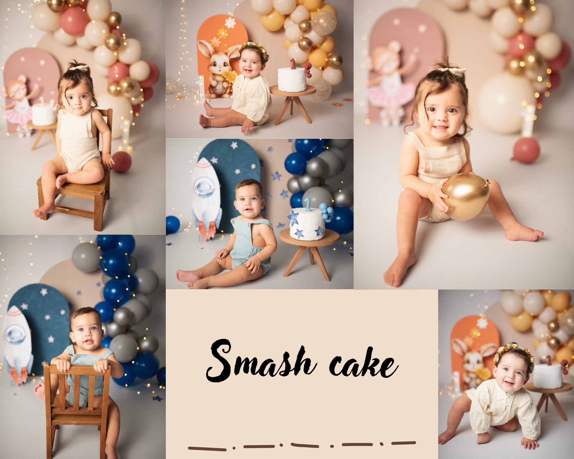 Las sesiones smash cake NORMALES incluyen la tarta, decoración, vestimenta y por último